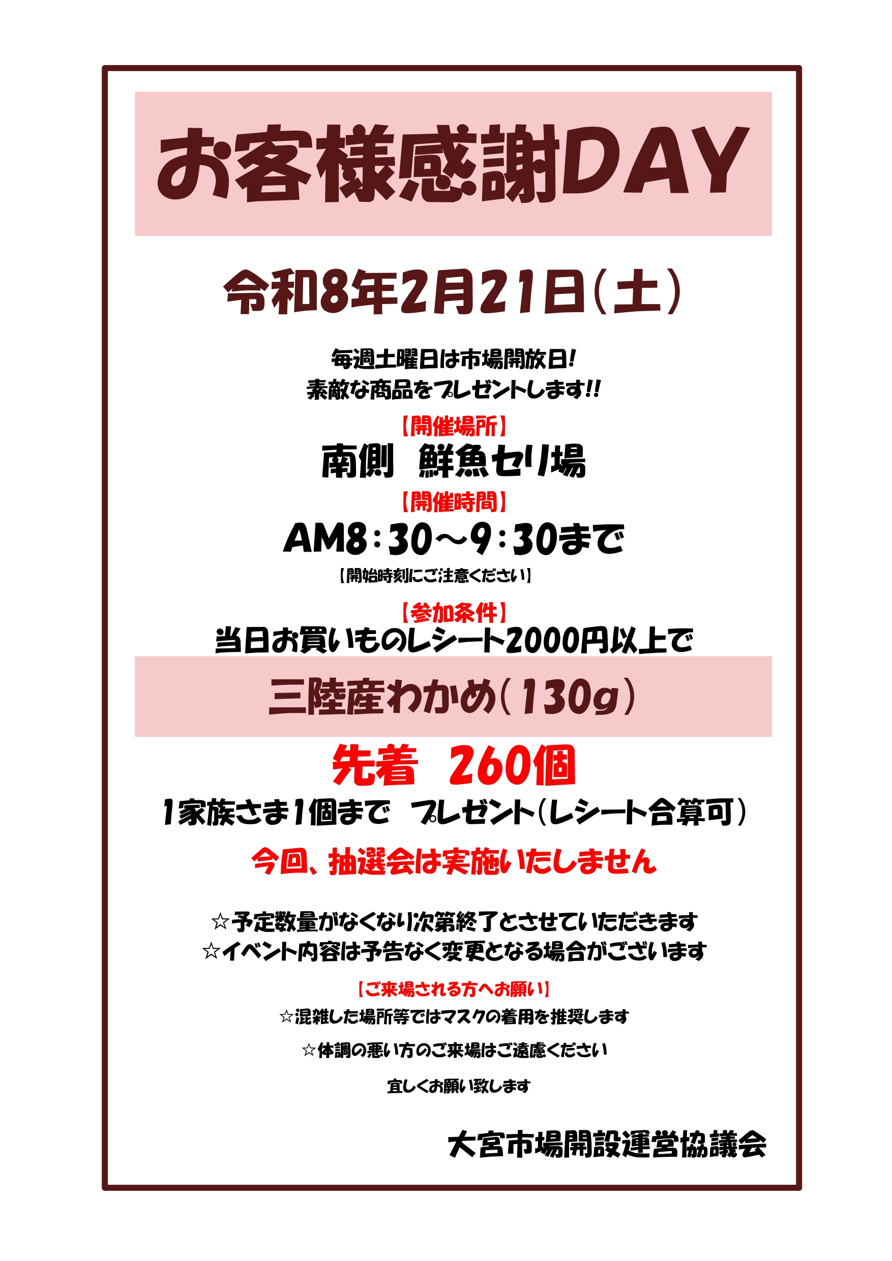 先着260名様に三陸産わかめ(130g)を差し上げます!