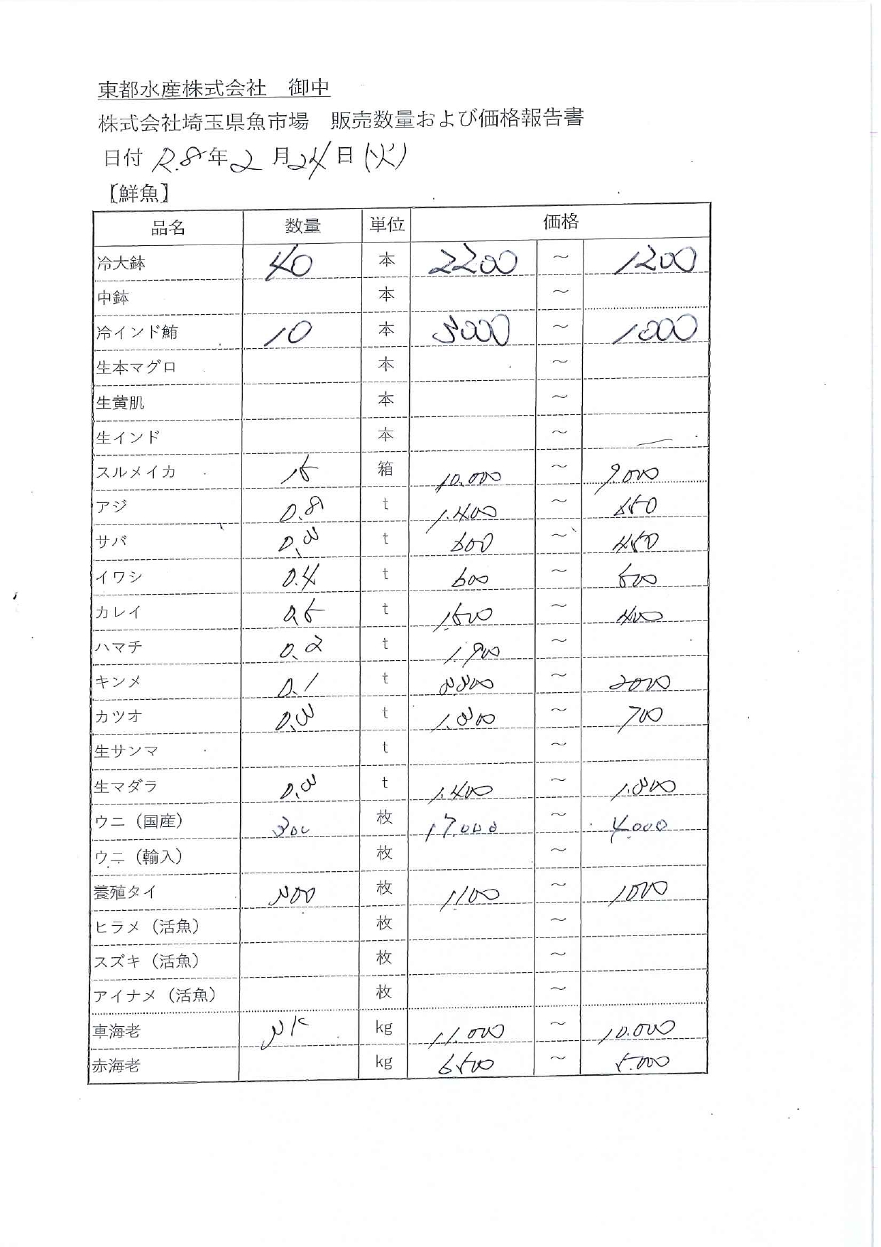 卸売の数量及び価格について