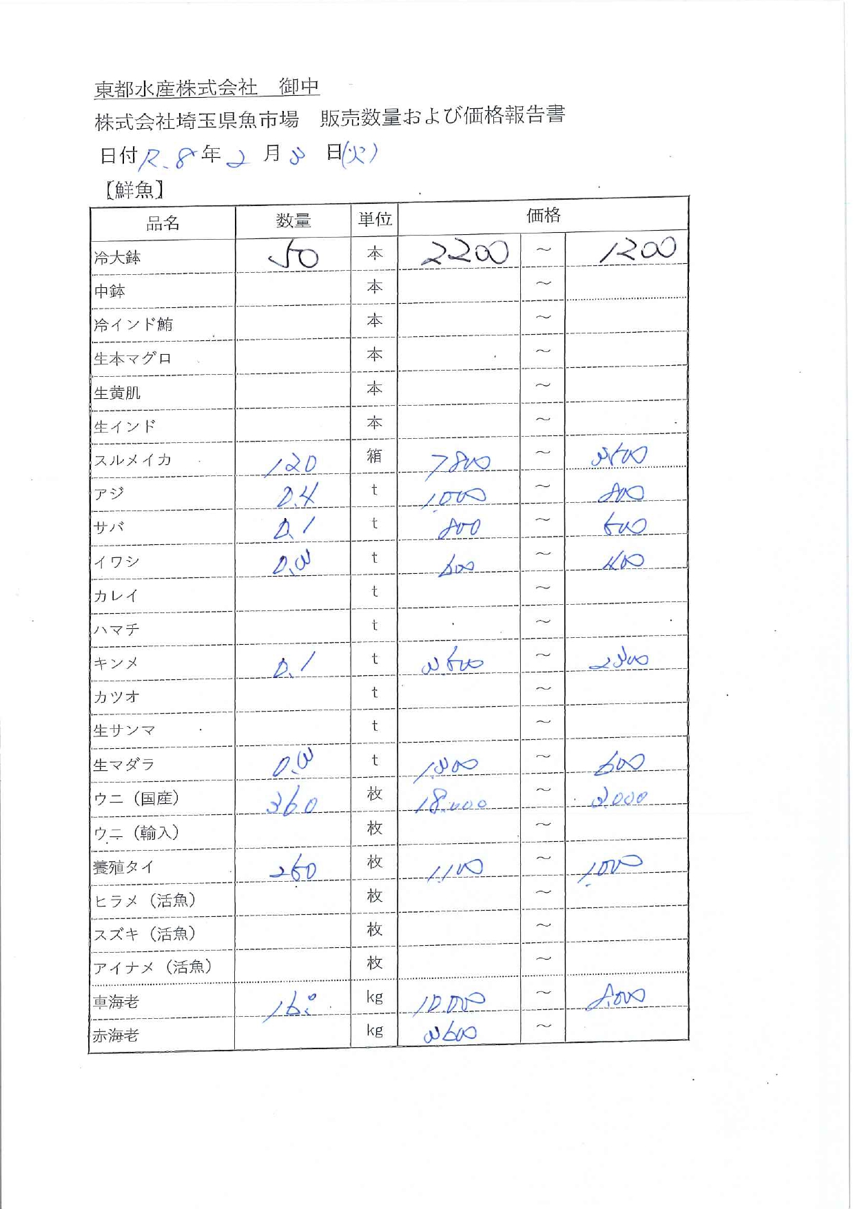 卸売の数量及び価格について